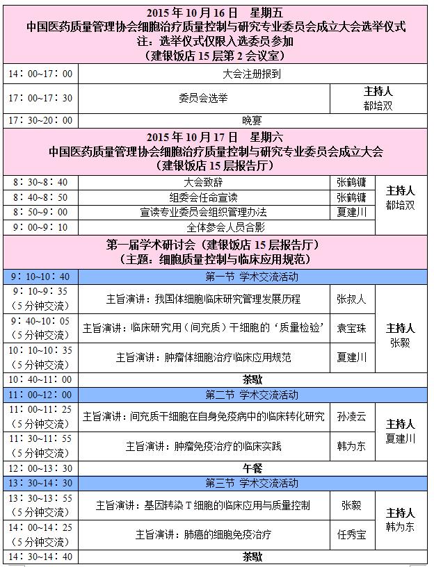 由中國醫(yī)藥質(zhì)量管理協(xié)會細胞治療質(zhì)量控制與研究專業(yè)委員會(籌)主辦、中山大學附屬腫瘤醫(yī)院、鄭州大學一附院、拜西歐斯(北京)生物技術(shù)有限公司聯(lián)合承辦的“中國醫(yī)藥質(zhì)量管理協(xié)會細胞治療質(zhì)量控制與研究專業(yè)委員會成立大會暨第一屆學術(shù)研討會”將于2015年10月16-17日在北京召開,成立大會將選舉產(chǎn)生第一屆委員代表和常務委員會委員,研討會將圍繞“細胞質(zhì)量控制與臨床應用規(guī)范”主題開展學術(shù)交流,屆時將邀請國內(nèi)外細胞治療領(lǐng)域(包括干細胞和免疫細胞)的專家學者就研討會主題作學術(shù)報告。本專業(yè)委員會是細胞治療質(zhì)量控制與研究領(lǐng)域學術(shù)交流的大平臺,將定期舉辦各種規(guī)模的學術(shù)交流會議,通過學術(shù)會議,以期達成行業(yè)共識,推動細胞制劑質(zhì)量控制標準體系的建立和相關(guān)政策出臺,使我國的細胞治療行業(yè)在規(guī)范化的基礎(chǔ)上健康有序發(fā)展。