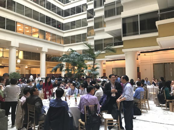 “BioLegend & 達科為—華盛頓D.C.之夜”華人晚宴作為AAI會議華人科學家的重要交流平臺,于當地時間5月14號晚上6:30在Old Ebbitt Grill開幕,來自全球各地約230多位華人科學家歡聚一堂。中國免疫學會副理事長孫兵教授、BioLegend總裁Gene Lay先生、達科為北京運營中心總監姚建春女士及其帶領下的達科為團隊對大家的到來表示感謝。在場的華人科學家們交流熱烈,現場氣氛融洽。并會場還在頂樓布置了觀景露臺,可以直接觀賞白宮、華盛頓紀念碑及附近夜景,美不勝收!大家度過了一個愉快難忘的夜晚,明年奧斯丁見。