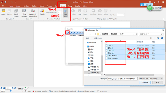 參考前面推文可知,在Denovo軟件中添加數據的方式有多種,以下通過Data list命令按鈕直接添加,具體操作如下: