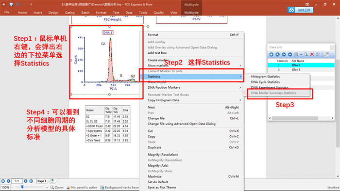 ? 演示內容:細胞周期數據的分析,關于細胞周期各個參數的調用,統計學圖表的建立