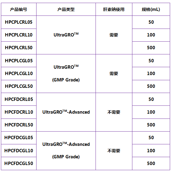 符:Helios可提供的血清替代物的所有產品和規格: