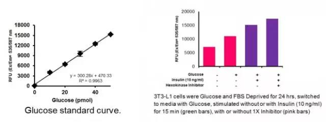 BioVision EZCellTM Glucose Uptake Assay kit 是一種簡單而超級靈敏、易用的葡萄糖攝取檢測試劑盒。試劑盒利用一種特殊的己糖激酶抑制劑抑制己糖激酶,己糖激酶是糖代謝過程中涉及到的第一個酶,在葡萄糖被細胞攝取后,可捕獲葡萄糖。 葡萄糖攝取是利用一系列酶反應檢測的,被氧化的葡萄糖產(chǎn)生的中間產(chǎn)物可以與OxiRed?探針反應而發(fā)出熒光信號(Ex/Em=535/587 nm) 。熒光信號量直接反應細胞所攝取和積累的葡萄糖。不像其他試劑盒是直接檢測葡萄糖衍生物,BioVision 提供了一種直接而強大的葡萄糖研究工具,可用于篩選和表征葡萄糖攝取相關疾病的藥物。