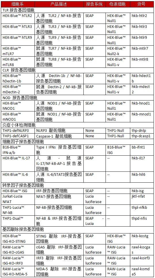 InvivoGen重組細胞系分類