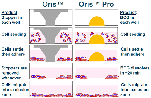 Platypus公司提供的OrisTM和OrisTMpro 產品系列,利用間隙封閉法來實現接近體內狀態的細胞遷移和侵襲。不用再穿越物理性的膜,也避免了劃痕的不均一性。
