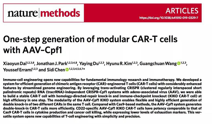 作者利用腺相關病毒( AAV )CRISPR -Cpf1系統,開發了一種高效的制備的Car-T的方法,而且具有顯著增強的特征。該技術使得Car-T制備的高效性大大提高。