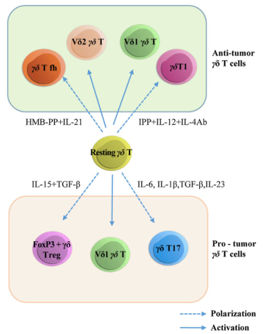 Human:通常,人的γδT細胞根據(jù)其TCR基因重排過程中TCR δ鏈的不同主要分為兩大亞群:Vδ1T細胞亞群和Vδ2T細胞亞群,其中,與Vδ1T細胞對應的TCRγ鏈主要為VγI基因家族成員(Vγ2/3/4/5/8),主要分布于黏膜和皮下組織中,在不同的組織中數(shù)量不等;Vδ2 T 細胞是γδ T 細胞的主要細胞群,其TCRγ鏈主要為VγII基因家族成員(Vγ9),因此又叫 Vγ9Vδ2T 細胞,僅存在于靈長類動物和人體內(nèi),主要分布于外周血中,占外周血淋巴細胞的0.5% ~10%。