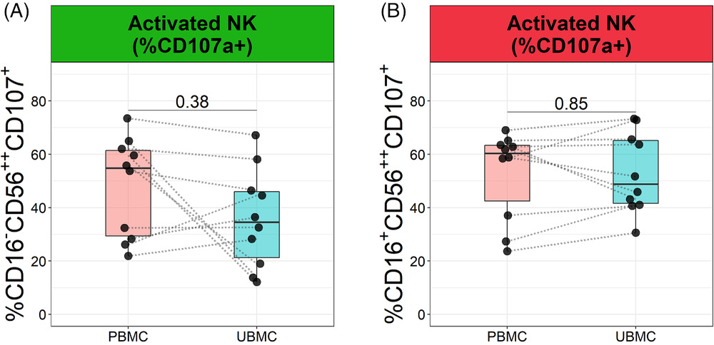 3 在足月剖腹產分娩時,活化(CD107a+ CD16-CD56++和活化CD16+CD56++細胞亞群的檢測。